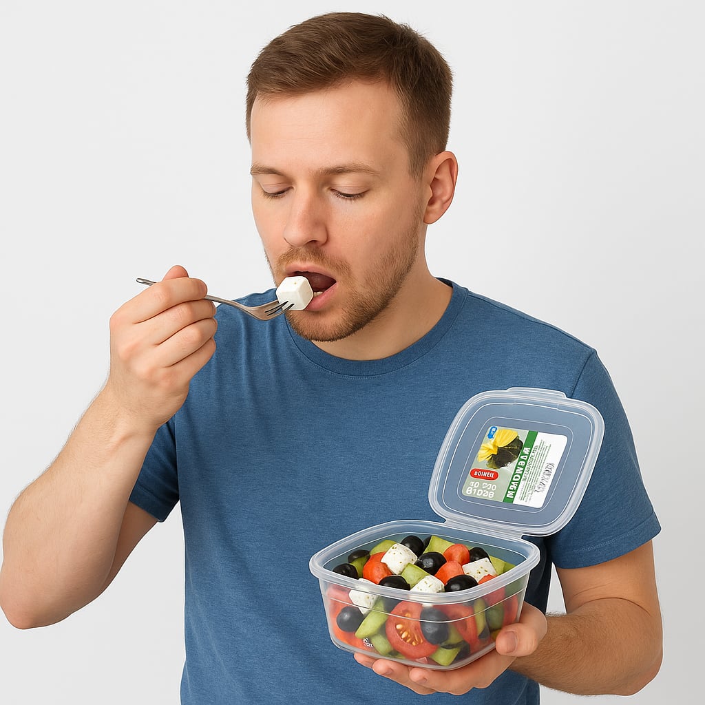 Praktyczny pojemnik plastikowy o pojemności 0,9 litra, idealny do przechowywania żywności w domu, pracy lub w podróży. Wykonany z trwałego, bezpiecznego dla zdrowia tworzywa, nie wpływa na smak i zapach potraw. Wyposażony w szczelną pokrywkę, która chroni zawartość przed wysychaniem i rozlaniem.