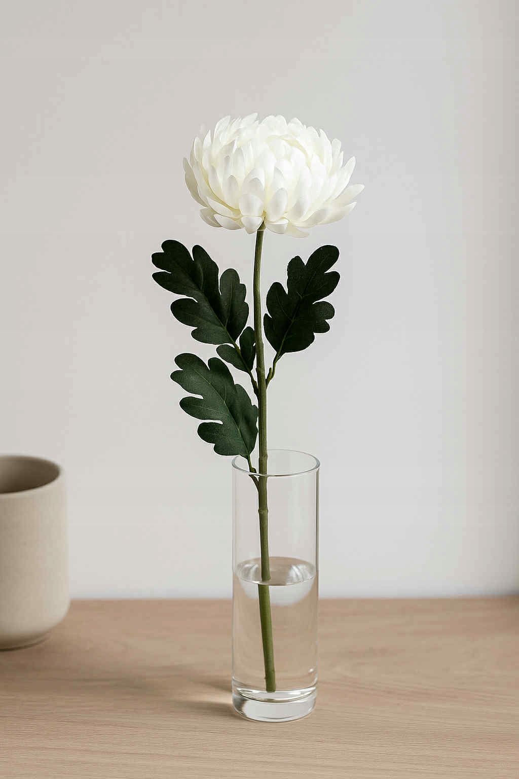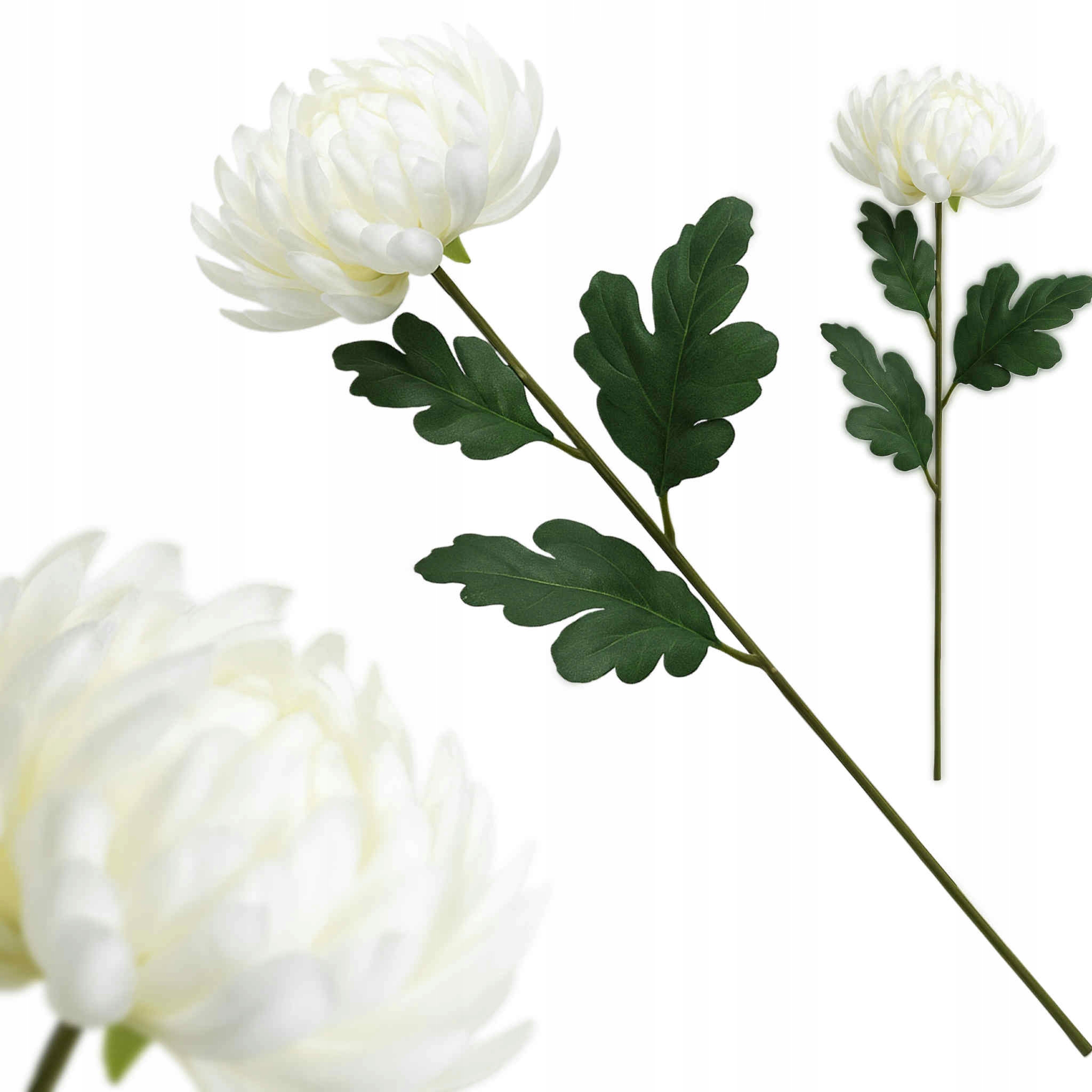 Nadaj swojemu wnętrzu elegancji i świeżości dzięki sztucznej chryzantemie o wysokości 55 cm. Duży, pełny kwiat w klasycznym białym kolorze w połączeniu z realistycznymi zielonymi liśćmi tworzy ponadczasową dekorację, która doskonale sprawdzi się w każdym domu, biurze czy sali uroczystości.