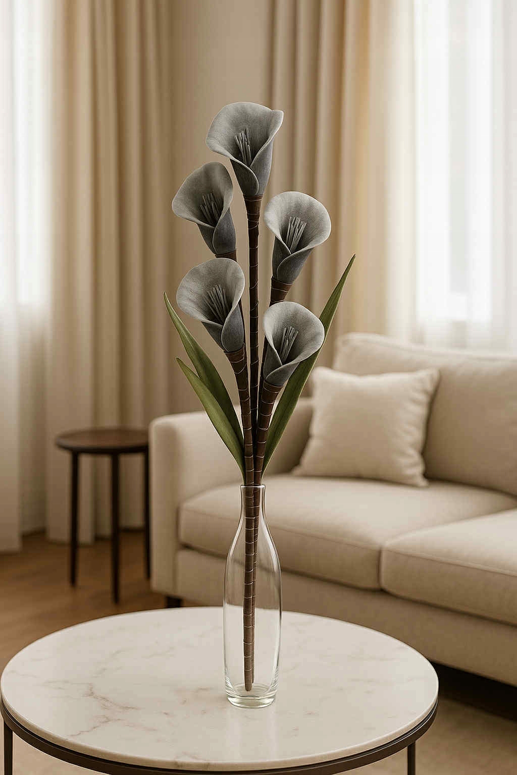 Długi, elastyczny łodygowy trzon umożliwia dowolne formowanie i dopasowanie do wazonu czy aranżacji florystycznej. Kalia to symbol elegancji i ponadczasowego stylu, dlatego świetnie sprawdzi się zarówno w nowoczesnych, jak i klasycznych wnętrzach.