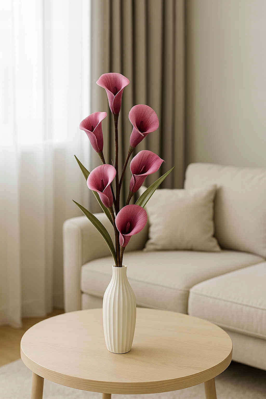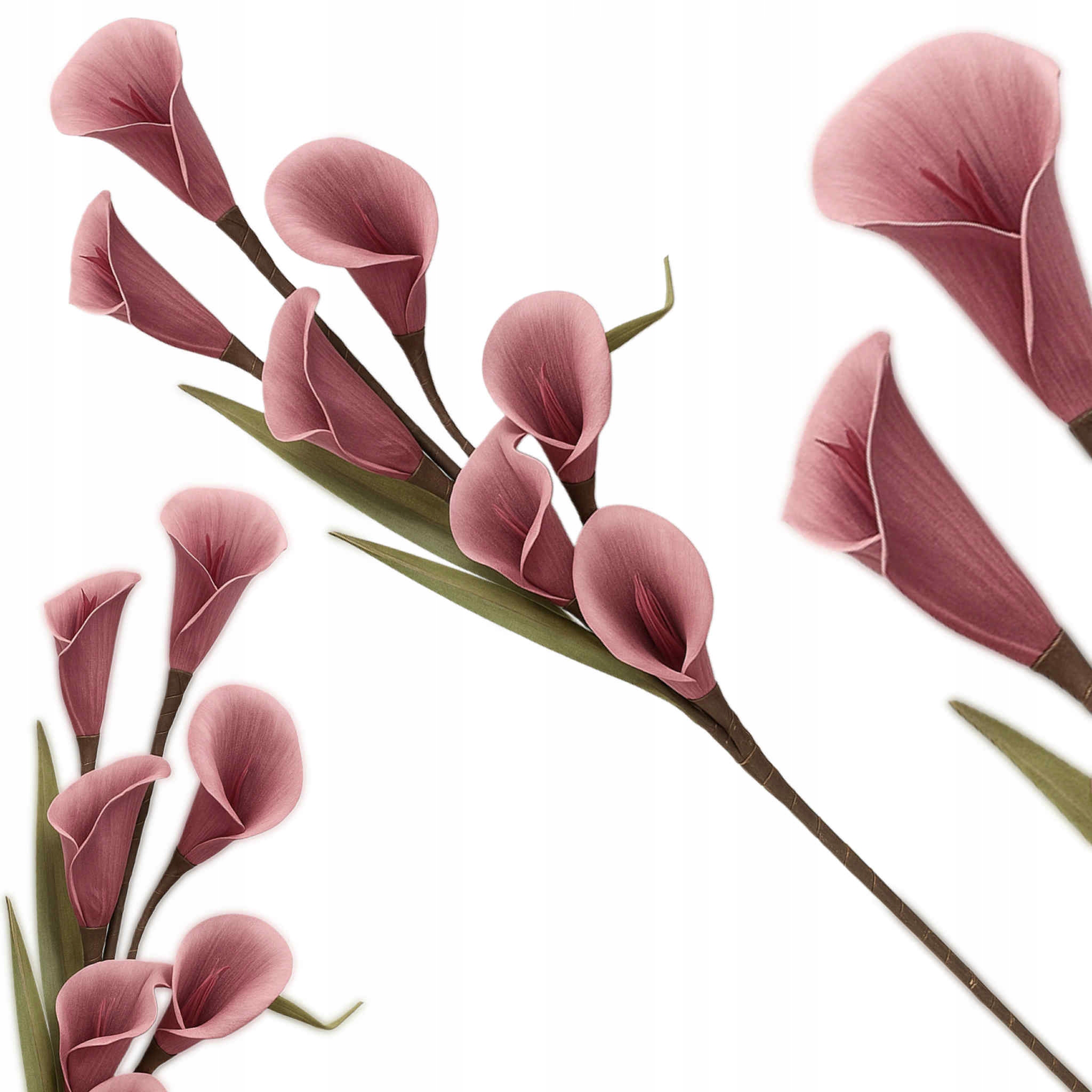 Elegancka gałązka sztucznych kalii o długości 108 cm to wyjątkowa dekoracja, która doda klasy i świeżości każdemu wnętrzu. Kwiaty wykonane są z wysokiej jakości pianki, dzięki czemu wyglądają niezwykle naturalnie – ich subtelny kształt i delikatny odcień przyciągają wzrok i doskonale imitują żywe rośliny.